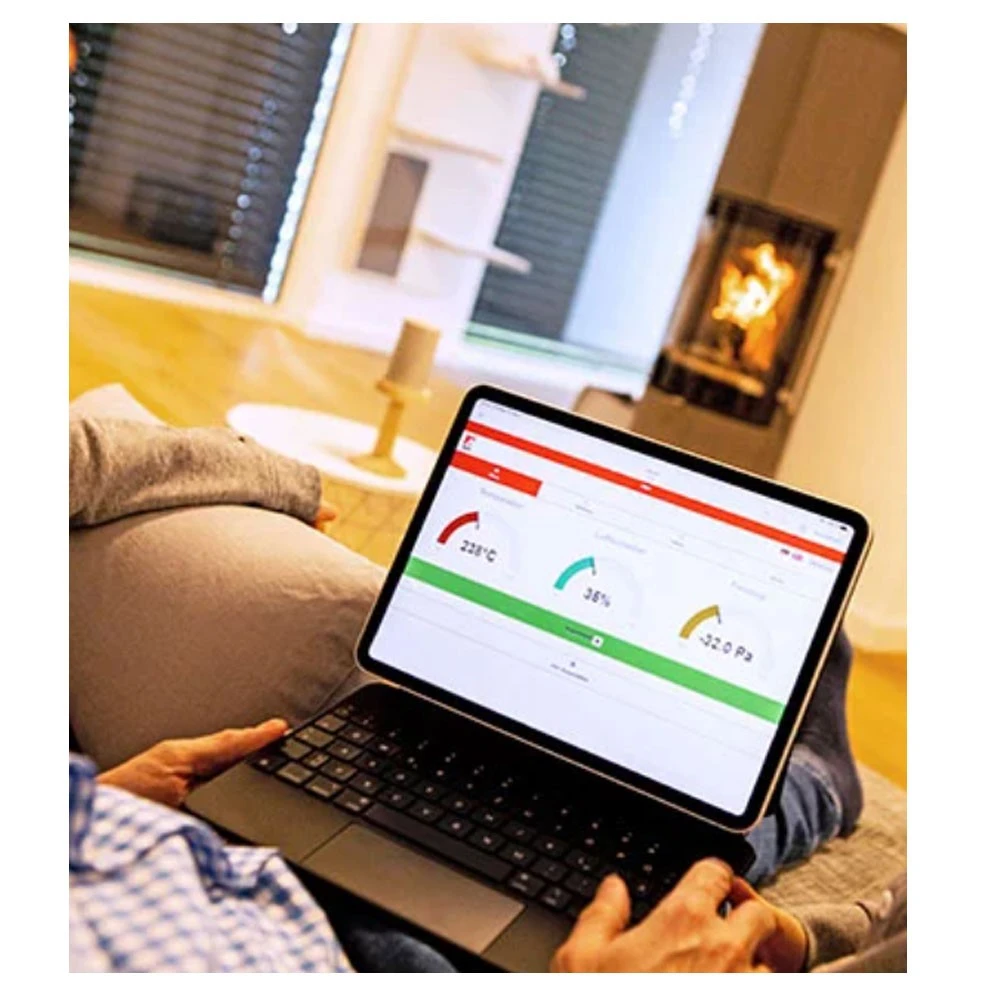 Die elektronische Abbrandsteuerung fire+ bietet Ihnen einen Komfortgewinn im Vergleich zu der manuellen Bedienung des Luftschiebers. Ganz automatisch justiert sich der Luftschieber je nach Holzmenge, Abbrandsituation und Schornsteinzug. Das Ergebnis sind gleichmäßig perfekte Abbrandzyklen. Insgesamt stehen Ihnen mehrere Abbrand-Programme zur Verfügung, je nachdem, ob Sie eher Holz sparen oder die Wohnung schnell erwärmen möchten: ECO – verlangsamter Abbrand, Normal – normaler Abbrand oder Power – beschleunigter Abbrand.