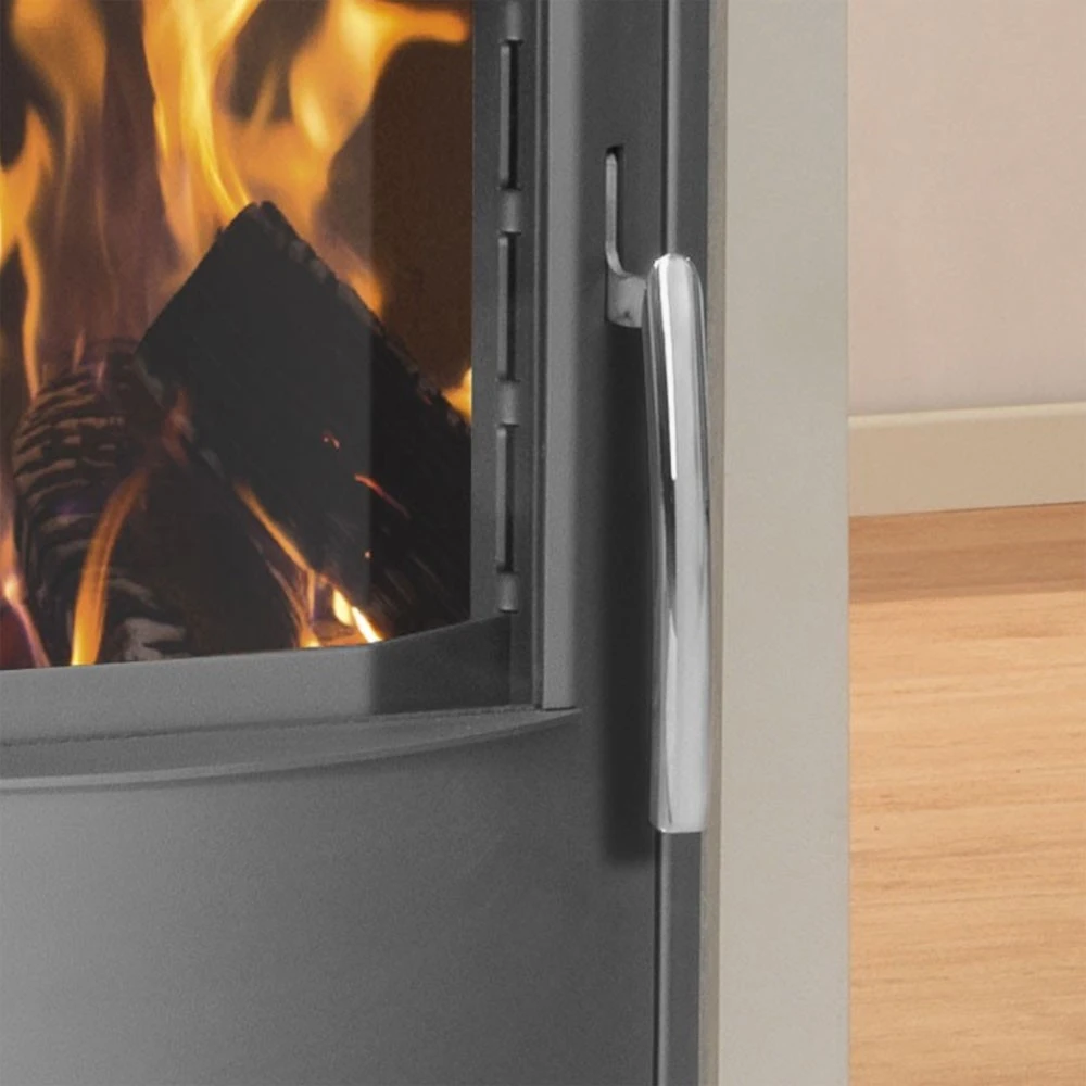 Die Mehrfachverriegelung verhindert ein Verziehen der Feuertür durch hohe Temperaturen. Zudem wird durch besonders gute Dichtigkeit der Eintritt ungewünschter Luftzufuhr verhindert und somit die Verbrennungsqualität im Ofen stabil gehalten.