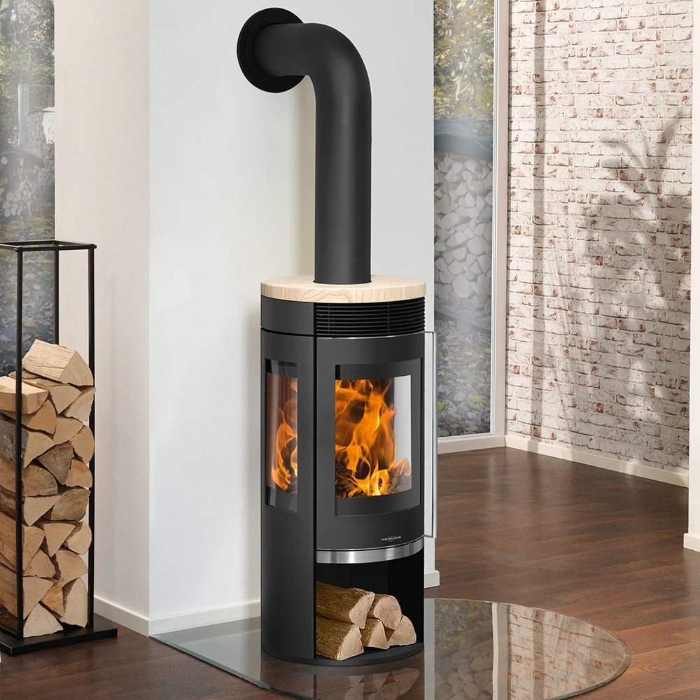 - Ein gezielt geführter Luftstrom verhindert das Kondensieren und Ablagern von Rauchgasen an der Scheibeninnenseite. Dadurch bleibt die Scheibe sauber.
