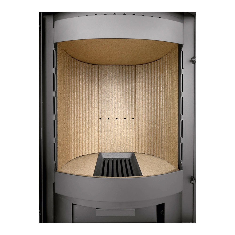 - Die Ofenauskleidung aus profilierten Vermiculite-Formteilen mit hoher Festigkeit und ansprechender Oberfläche sieht nicht nur gut aus, sie fördert auch die gewünschte Verwirbelung der Brenngase für eine saubere Verbrennung.