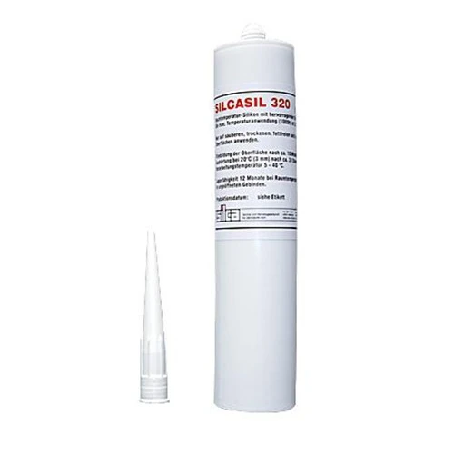 SILCASIL 320 ist ein Hochtemperatur-Silikon mit ausgezeichneter Klebekraft und dient zum Abdichten und Kleben, zum Beispiel zum Einkleben von Schnürren oder Bändern. Die Anwendung kann auf den meisten tragfähigen, sauberen, staubfreien Flächen wie Metall, Keramik oder Mineralische Baustoffe erfolgen.