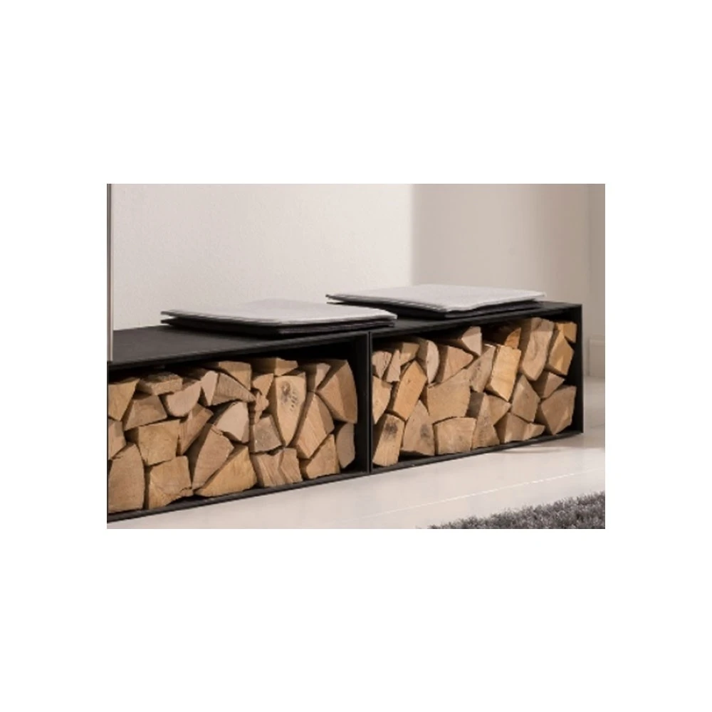 wodtke Block Box black als Holzlege für den Kaminofen oder Sitzbank. Module für die Gestaltung einer individuellen Holzlege oder Sitzbank.