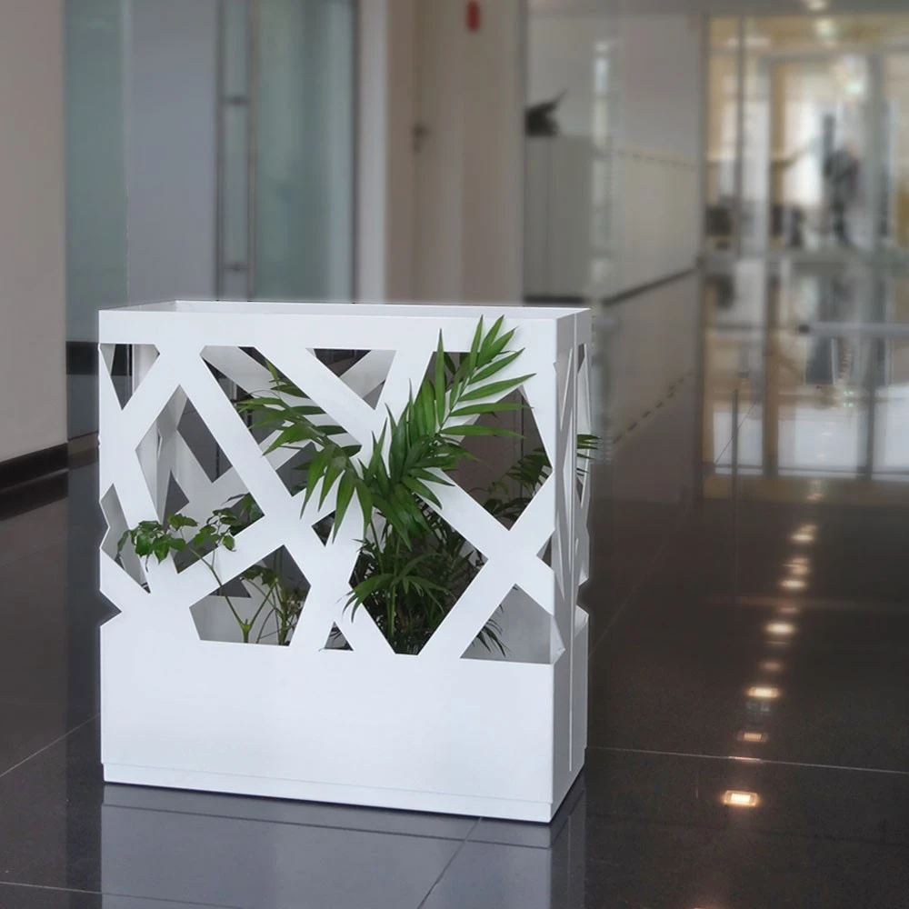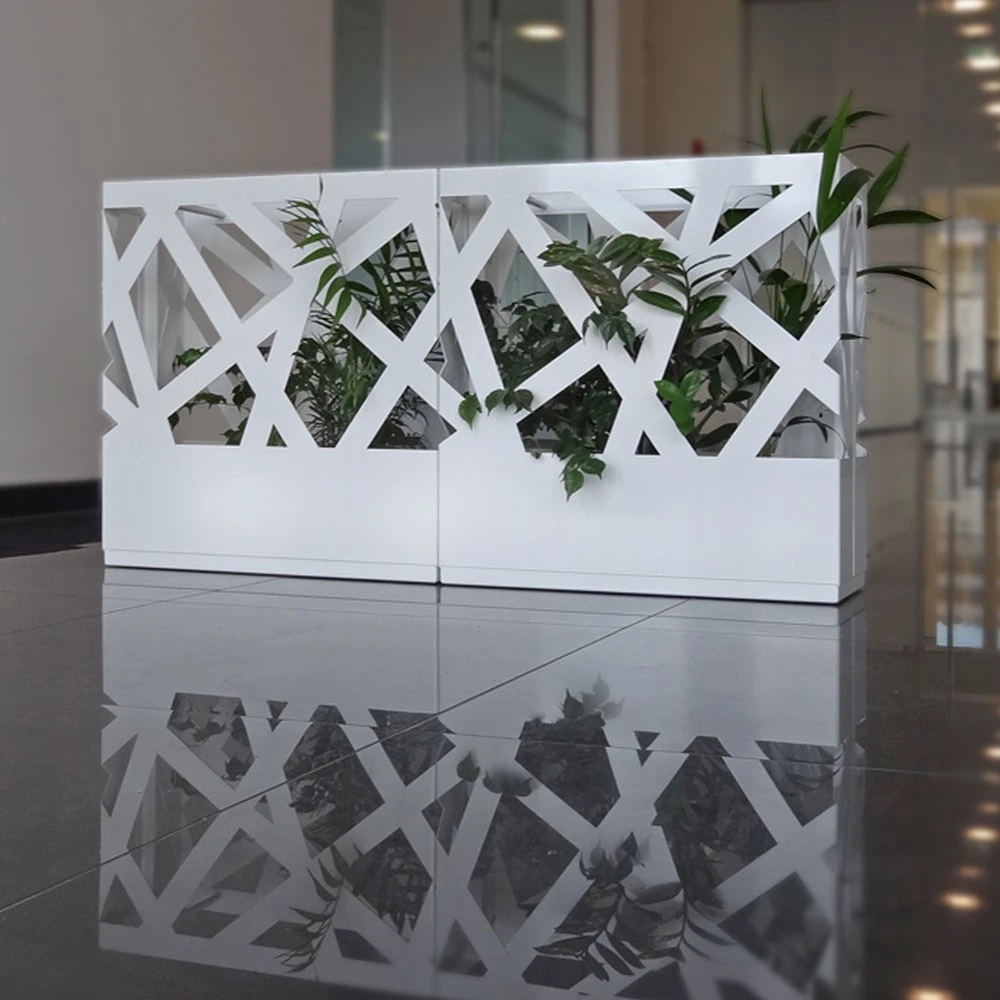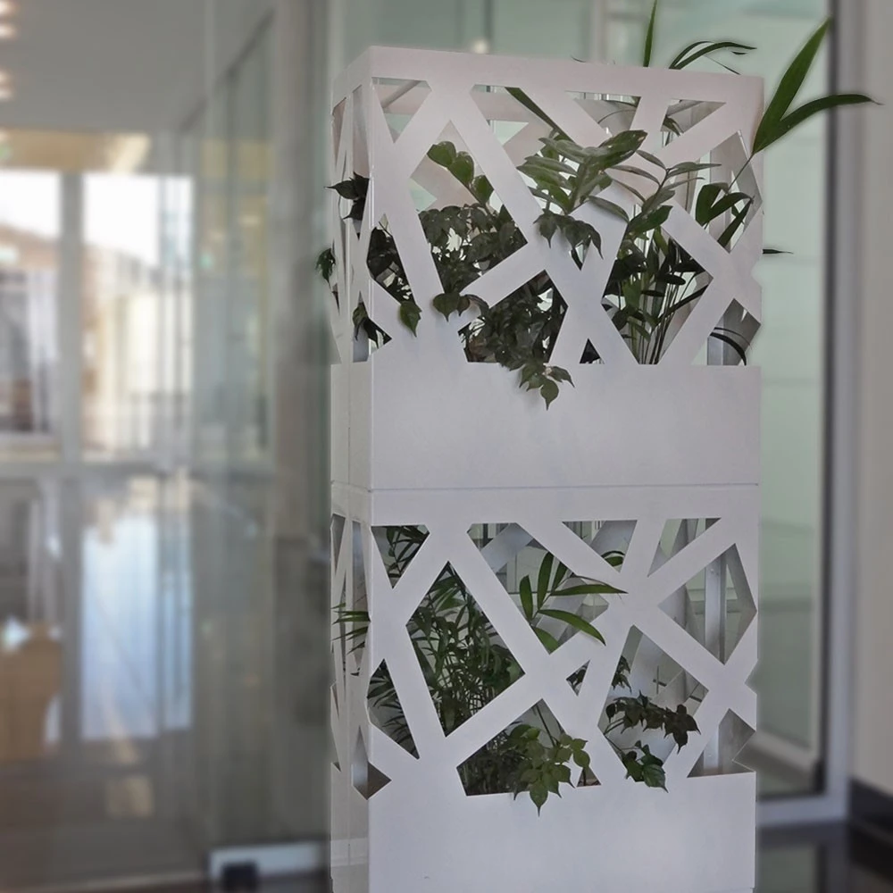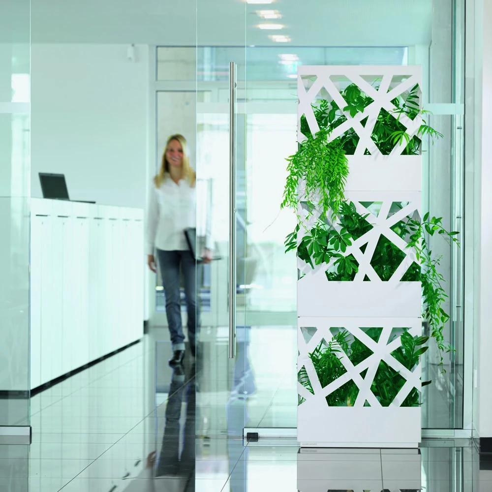 Raumteiler „Pflanzkübel“: wodtke Jardinière ist stapelbar – bis zu drei Einzel-Elemente übereinander und beliebig viele nebeneinander bilden mit dem fortlaufenden horizontalen Design ein organisches Objekt, das indoor und outdoor aufgestellt werden kann. Die wasserdichte Bodenwanne erlaubt direktes Bepflanzen oder das lose Aufstellen von Töpfen. Die Oberfläche ist pulverbeschichtet und wahlweise in schwarz oder weiß erhältlich.
